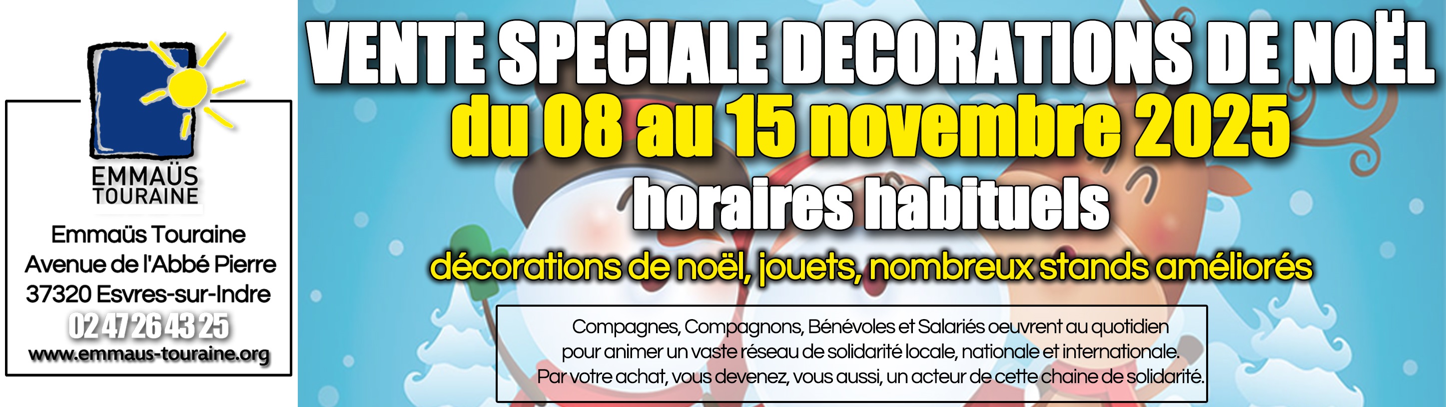 la réouverture de notre site Emmaüs à Joué les Tours à partir du vendredi 18 octobre 2024 à 14h00.
