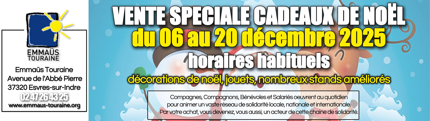 Notre site Emmaüs Touraine Esvres-sur-Indre fermera exceptionnellement à partir de 12h les mercredis 24/12 et 31/12.
